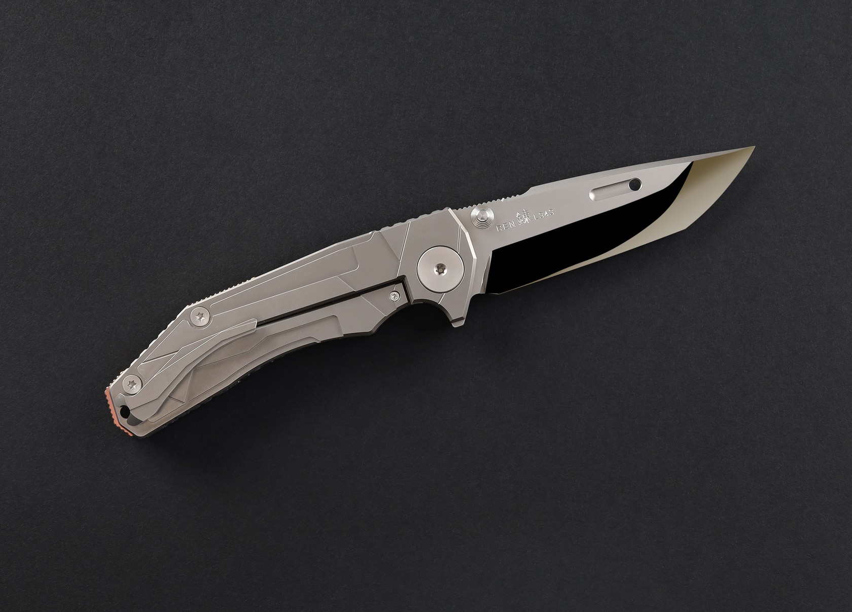 This model is veryclear design. The blade shape is "T-HONZUKURI". It is Tanto-convex grind. As you know, we are making to the "Tanto" blade shape as a CHI model. But, this blade shape is "T-SHINOGIZUKURI". That means straight grind.